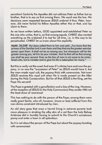 the man-made royal cult, the papacy thick with ceremonies. Not even