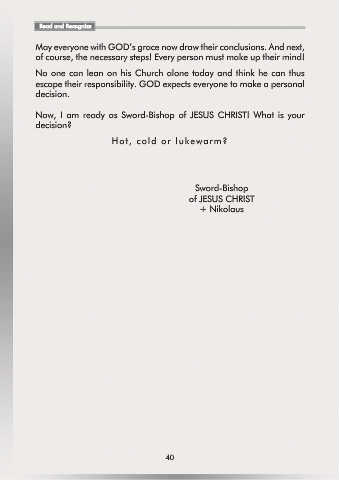 Now, I am ready as Sword-Bishop of JESUS CHRIST! What is your