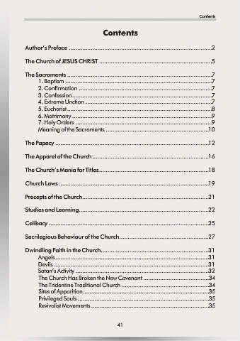 The Tridentine Traditional Church ....................................................34